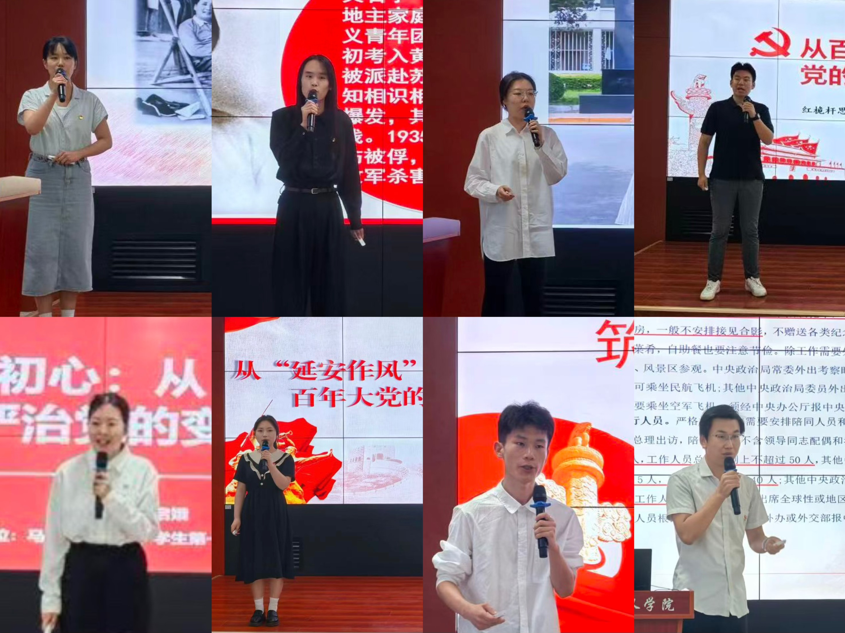 8名参赛选手紧扣比赛主题,以延安时期中国共产党通过整风运动确立的优良作风为切入点,从老一辈无产阶级革命家开辟初心之源,到新时代中国共产党“以人民为中心”的理念,展现出了新时代全面从严治党的建设成果与中国共产党人的继承与坚守。他们凭借扎实的专业知识、声情并茂的叙述方式,生动诠释了中国共产党百年初心传承,彰显了西大马院学子深耕于百年党史而立足于时代呼声的信念担当。