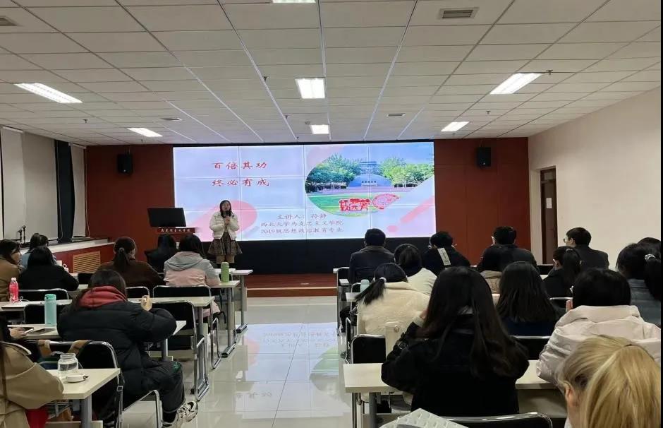 2021年11月11日晚,我院在西学楼1104报告厅举办“硕士研究生国家奖学金获得者专题分享会”。本次活动由2019级思想政治教育专业的孙静和周钰玲两位同学主讲,我院2021级硕士研究生参与此次学术分享会。