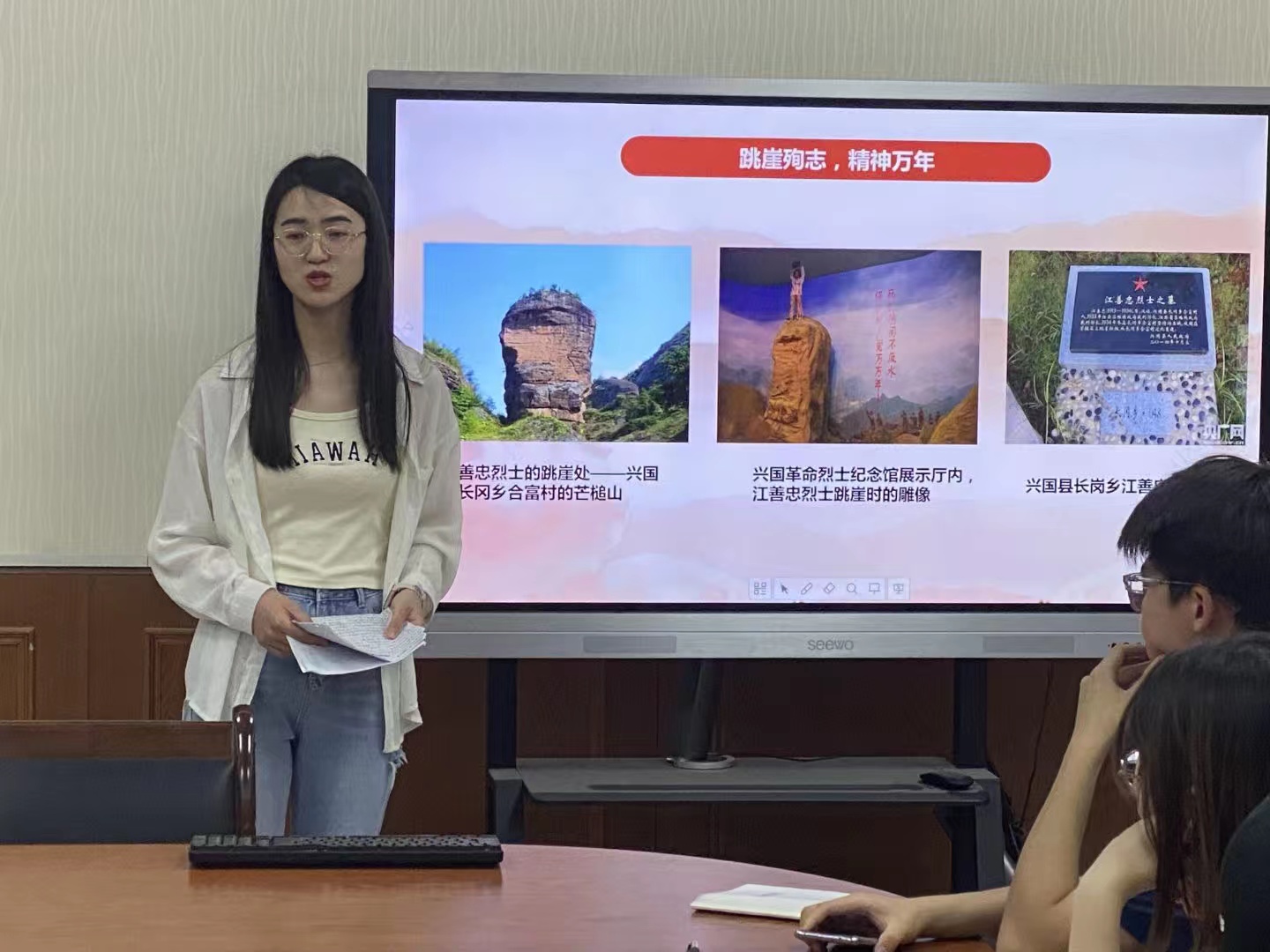 骆家昕以《中国青年的楷模:恽代英》为题,结合恽代英革命救国的一生,号召新时代的中国青年应以青春之我创建青春之家庭、青春之国家、青春之民族,带着党和人民百年奋斗的荣光,在新时代的奋斗中绽放绚丽的光彩。