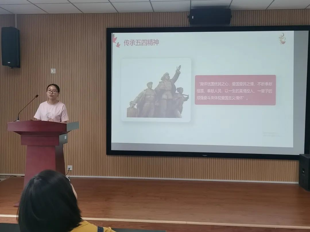 刘素琪同学以《时代向前,青年向上》为题,首先向同学们介绍了在中国革命建设改革过程中具有代表性的先进青年,向大家说明了时代不同,使命不同,但冲锋在时代前列的青年力量未曾改变。其次,结合习近平总书记对青年人的殷殷寄语,表达了党始终把青年看作推动历史发展和社会前进的重要力量,在领导中国青年运动的实践中不断丰富和发展着青年工作。最后,通过对《新时代的中国青年白皮书》部分内容进行讲解,让同学们在这个青年大有可为的时代、在迎接党的二十大召开之时,能够担负起青春的责任,做到有理想、有本领、有担当,在实现中国梦的理想中展现英姿,在练就过硬本领中担当时代重任。