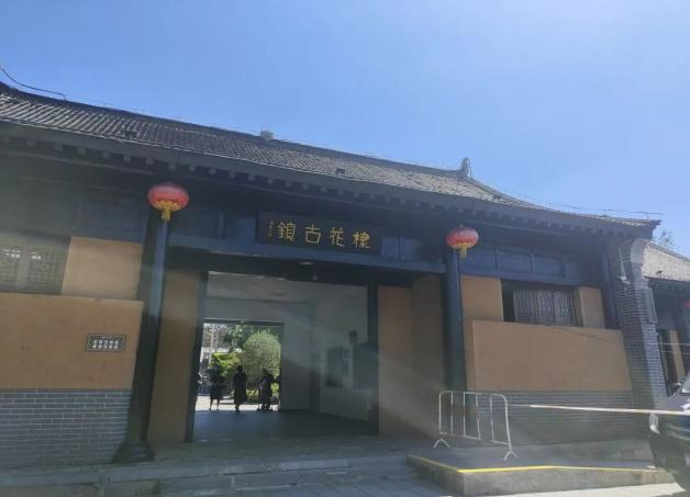 实践队抵达本次实践调研的最后一站——丹凤县船帮会馆。船帮会馆位于陕西省丹凤县龙驹街道办西南隅,始建于清嘉庆二十年(1815年),占地面积5420平方米。整体建筑为土木结构,做工精细,雕刻讲究。晨曦阳光中,屋顶的琉璃瓦,显得金碧辉煌。因建筑宏伟华丽,其中又祭祀着丹江水神,故俗称“丹凤花庙”。