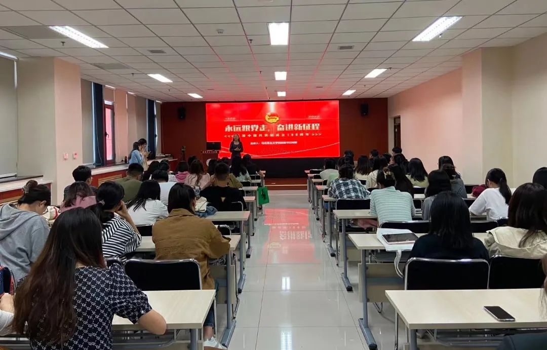 9月22日,我院开展“永远跟党走,奋进新征程”主题团课,本期团课由院团委书记刘娟主讲,马克思主义学院2022级全体团员参加并学习。
