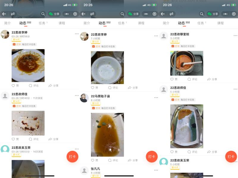 3月6日起,我院举办“光盘打卡”行动,倡导大家践行节粮理念,养成不贪多不浪费的饮食好习惯。我院共有46位同学参与了本次光盘打卡行动,同学们每日在打卡小程序内上传自己的光盘照片进行活动参与。在本次活动中,我院学子争做节粮减损的践行者,用青春行动筑牢粮食安全底线,展现出勤俭节约、艰苦朴素的优良品质。