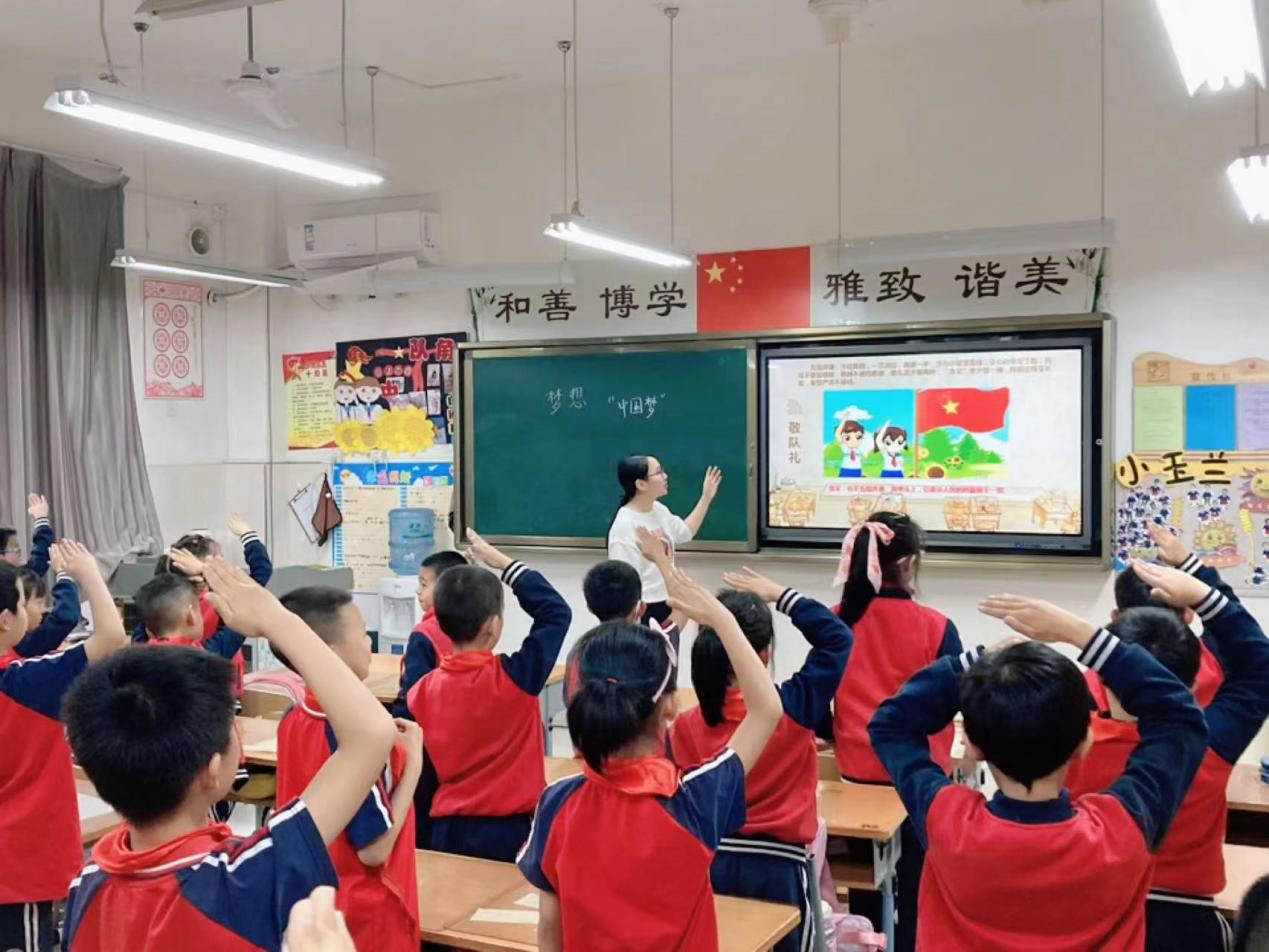 杨靖垭以《新时代新征程》为主题,分别从党的二十大向未来、伟大党史我来说、争做新时代好队员三方面诠解“新时代新征程”,并带领全体同学一起学习习近平总书记的寄语。