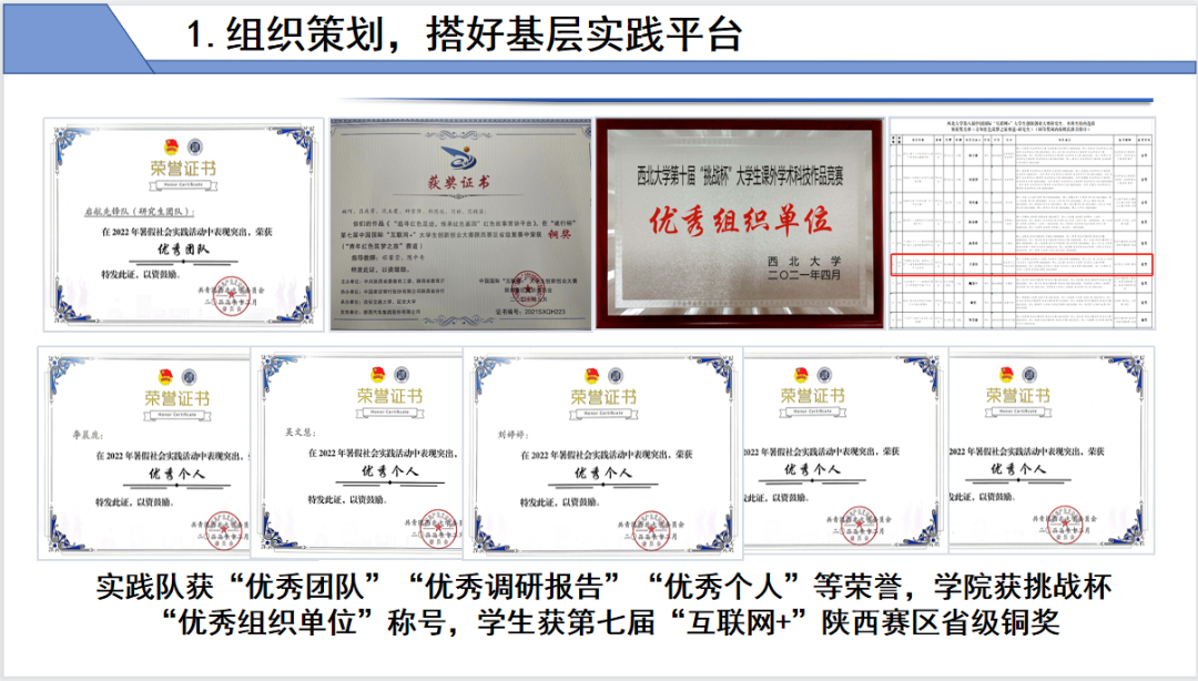 开阔思路,搭好宣讲实践平台。开展校地合作,协助学院在社区建立大学生理论宣讲实践基地,搭建基层宣讲平台,在社区、企事业单位开展宣讲48次;彰显朋辈价值引领,在校内开展宣讲32次。2人在省级比赛中获奖;25人受聘为校宣讲团成员。