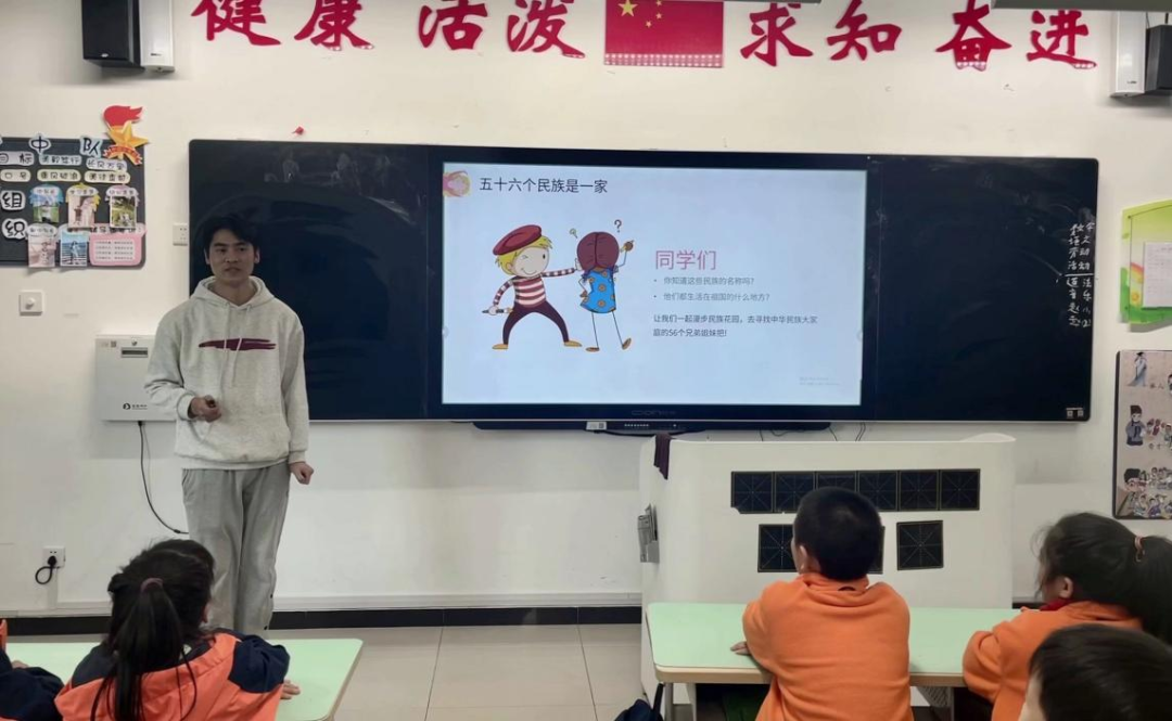 11月17日,我院红桅杆思政理论学习社团在西北大学附属小学,为二年级的同学讲述了新时代党的民族政策和民族理论的相关内容。主讲人是来自2023级思想政治教育专业的硕士研究生李斌和马雪凝。