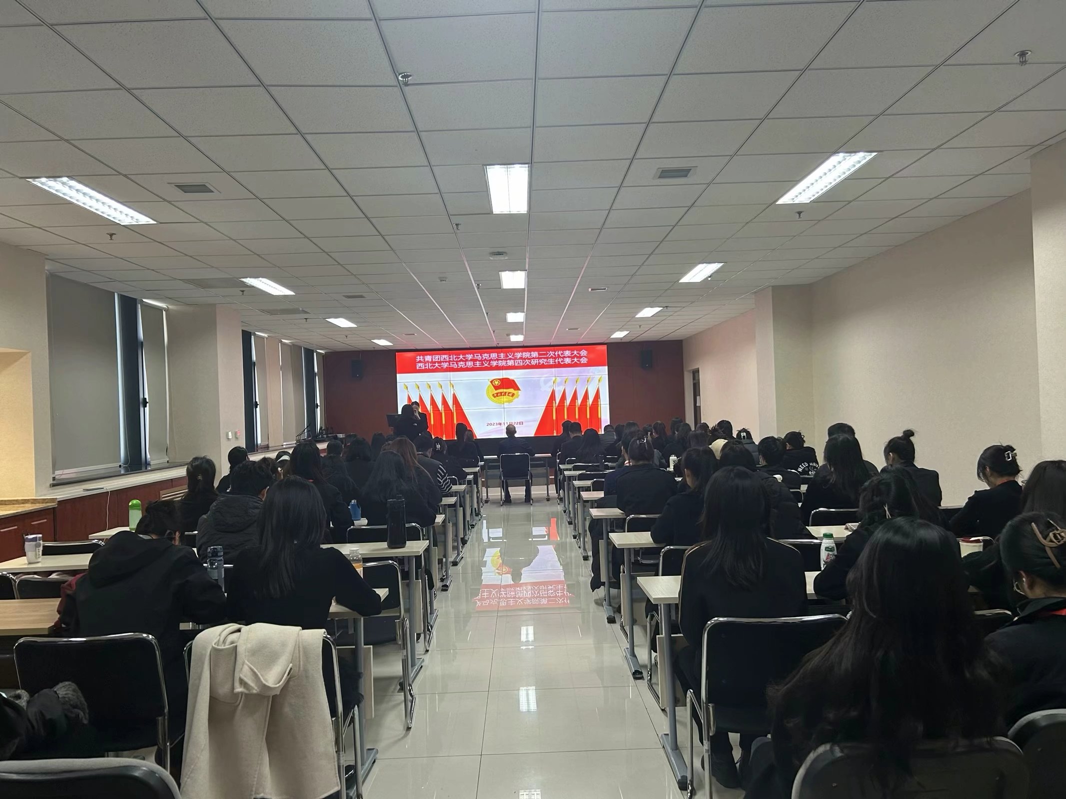 11月22日下午,共青团必赢242net官网第二次代表大会暨第四次研究生代表大会在西学楼1104报告厅隆重召开。我院党委书记韩凯峰、校团委副书记曹智、院党委副书记邵平、法学院团委书记陈竟、安莱学院团委书记刘扬、外国语学院团委书记马圣渤、校研究生会主席团成员赵妍以及马克思主义学院团员及研究生代表参加本次大会。会议由学院团委书记刘娟主持。