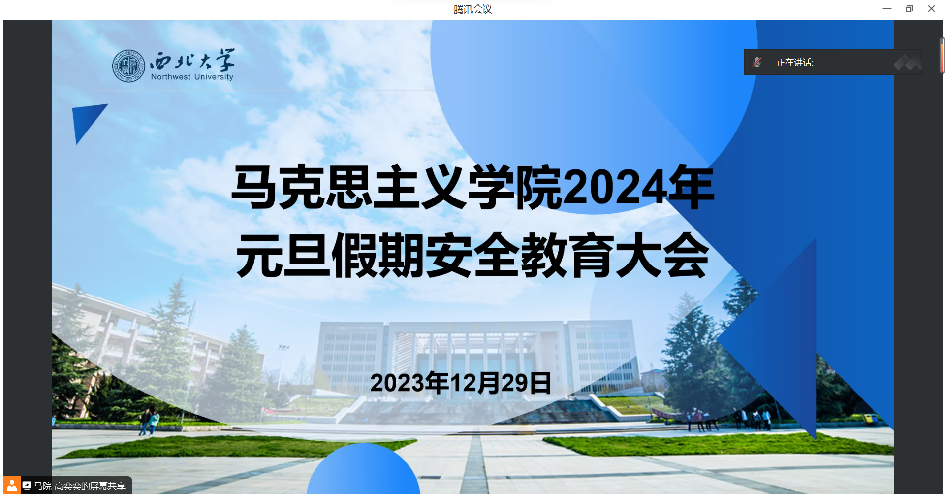 12月29日下午,我院召开2023年元旦假期安全教育大会线上会议,我院全体研究生参加此次会议,会议由辅导员刘娟主持。