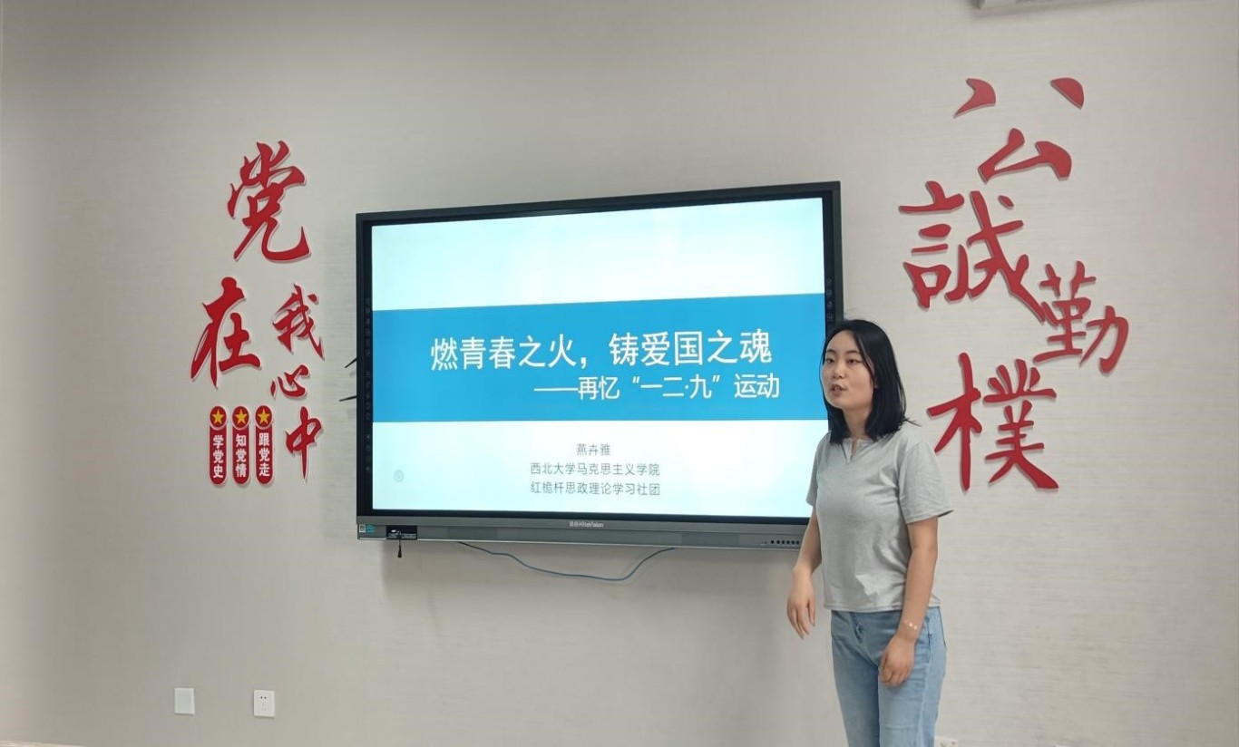 燕卉雅以《燃青春之火,铸爱国之魂—再忆“一二·九”运动》为题,向同学们详细讲述了“一二·九”运动的前因后果及重大意义,并简要回顾了党领导青年运动的光辉历程,号召同学们以民族复兴为己任,为全面建设社会主义现代化国家凝聚青春力量。