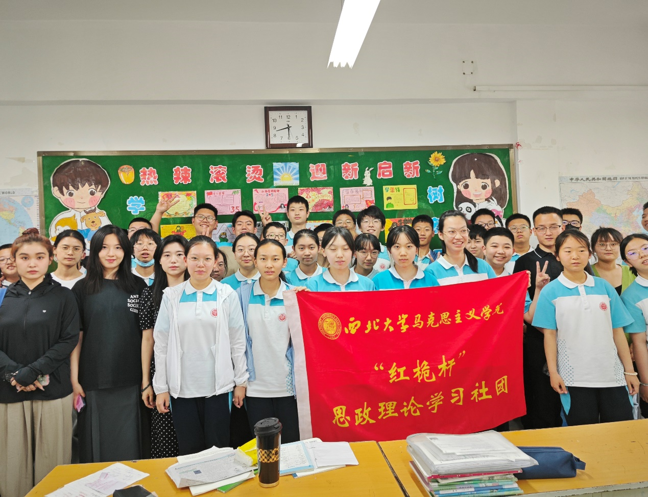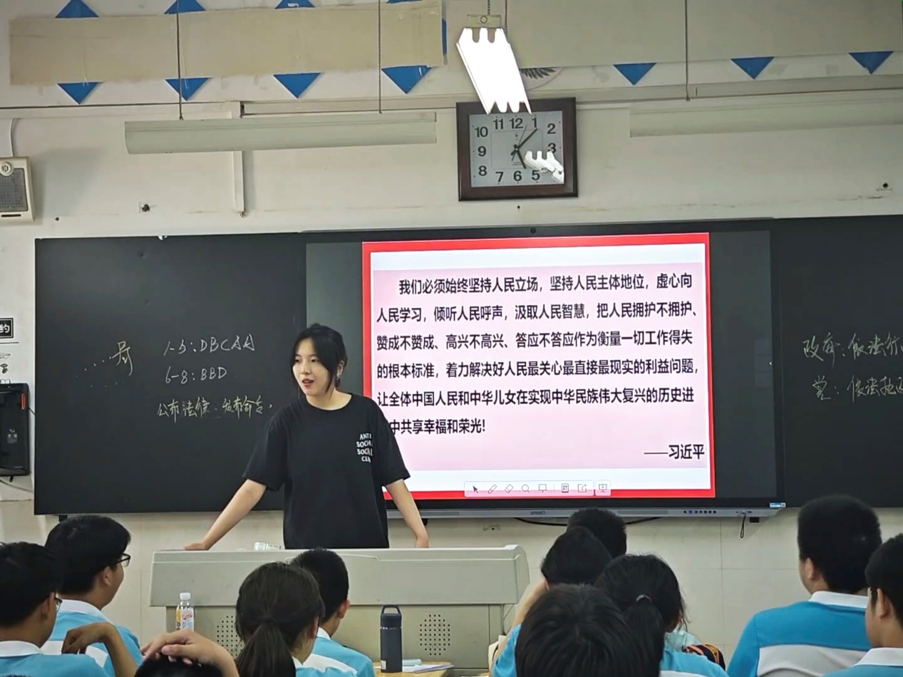 5月22日,我院红桅杆思政理论学习社团在西北大学附属中学,以《习近平新时代中国特色社会主义思想学生读本》(初中)为主要内容,为八年级的学生讲授思政课。主讲人分别是来自2022级和2023级的马克思主义基本原理、马克思主义中国化研究、思想政治教育与中国近现代史基本问题研究专业的9位硕士研究生。