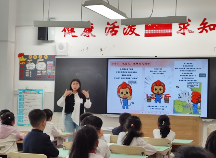 冯金香以《习近平爷爷心系人民群众》为题,通过展示《人民就是江山,江山就是人民》的视频,讲述习近平总书记深入人民群众的故事,让同学们感受到习近平总书记的人民情怀。