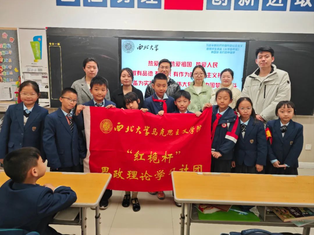 3月14日,我院红桅杆思政理论学习社团在西安航天城第六小学,以《习近平新时代中国特色社会主义思想学生读本》(小学低年级)为主要内容,为二年级的小学生讲授思政课。主讲人分别是来自2023级和2024级思想政治教育与中国近现代史基本问题研究专业的6名硕士研究生。