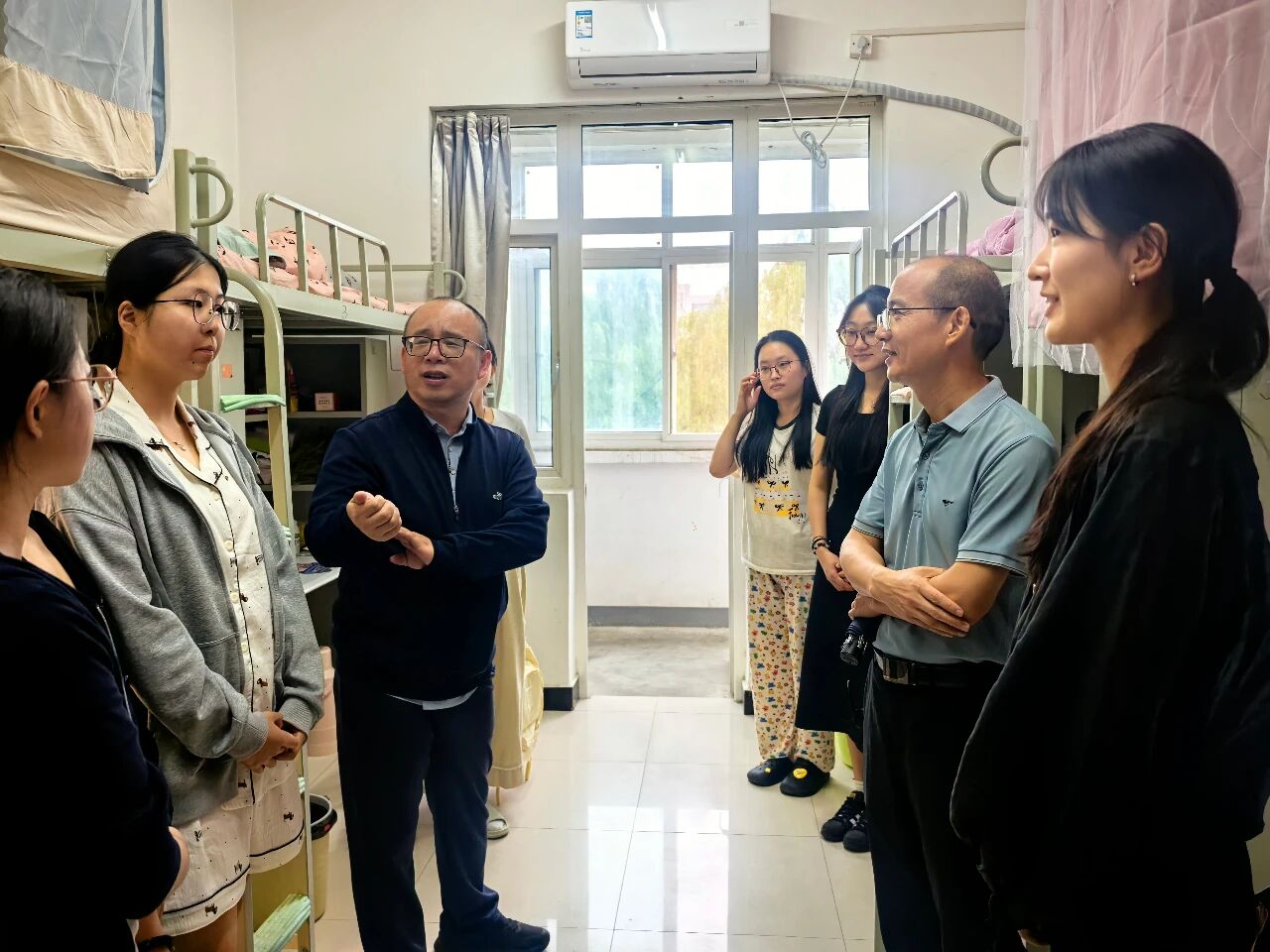 8月29日下午,我院党委书记韩凯峰、院长何博、党委副书记邵平及辅导员刘娟一行来到学生公寓看望我院2025级新生。