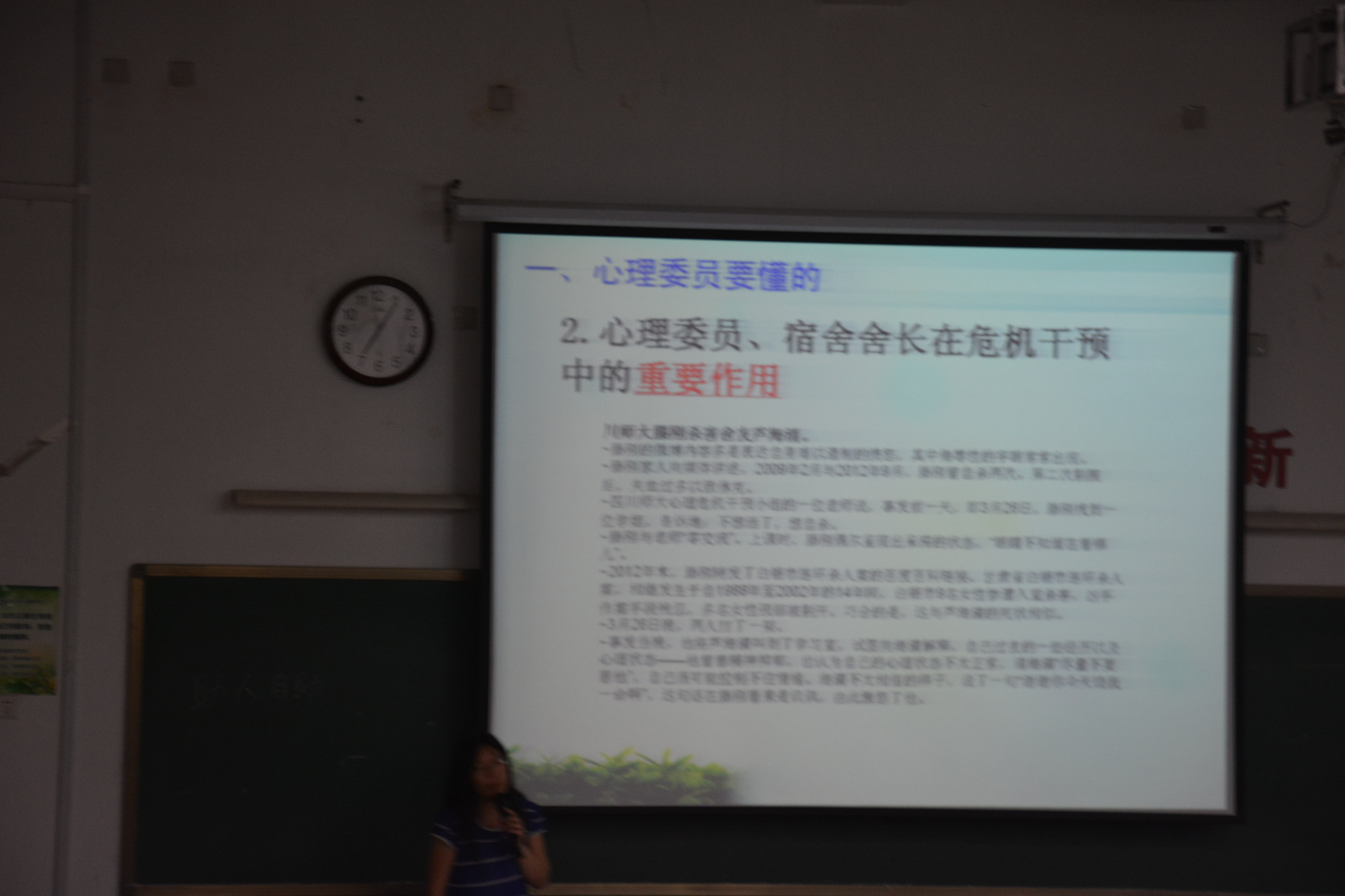 老师说:“你生病了,在床上躺了一天,你平时的朋友都没有注意到这件事,只有你的舍友对你嘘寒问暖,关心你的病情,这样会让你的心情好很多。”这就是在心理健康中宿舍舍友的重要作用,他们是生活在身边的人,也是在我们生病难受的时候照顾我们关心我们的人,因此,在遇见心理危机时,宿舍舍长的干预也是必不可少的。