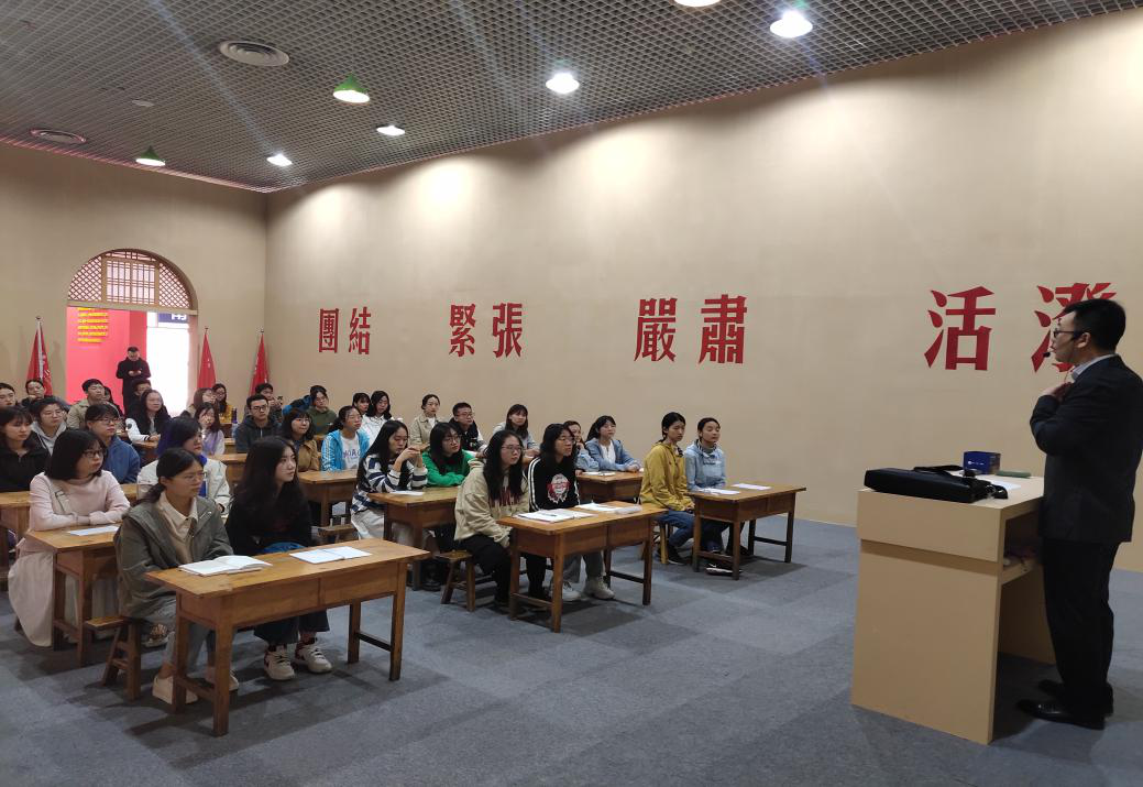 2019年10月14日,我校2018级40名本科生在马克思主义学院赵沛副教授的带领下,赴曲江国际会展中心参观了“辉煌壮丽七十年 追赶超越再出发——陕西省庆祝中华人民共和国成立70周年成就展”,并在展馆内公开讲授了一节题为“探索 变迁 自信”的思政课。