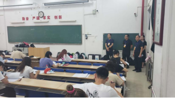 受疫情影响,我校思想政治理论课线下期末考试延期至8月25日进行。为加强期末考试的组织管理和考风建设工作,2020年8月25日上午,校党委副书记、我院院长吕建荣、院党委书记刘杰带领其他院领导,前往期末考试现场进行巡视检查。