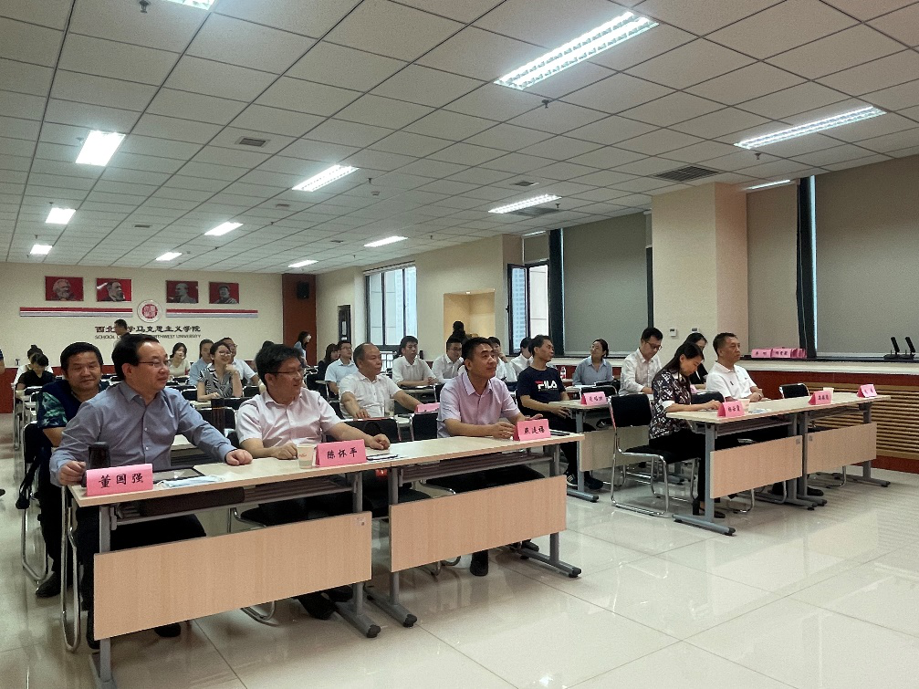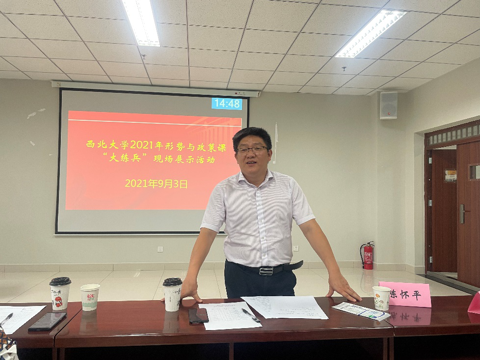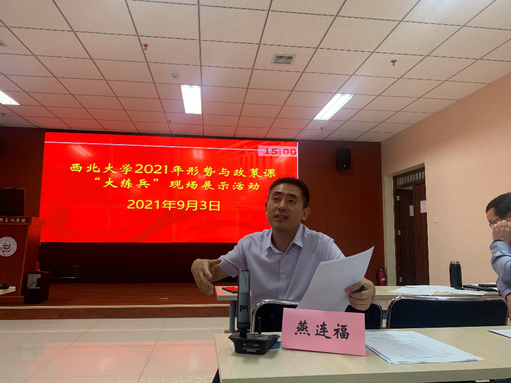 我院于9月3日下午在西学楼学院报告厅和会议室举办了2021年西北大学形势与政策课“大练兵”现场展示活动,各个学院的辅导员参加了本次活动。本次活动评委由西安交通大学马克思主义学院院长燕连福教授、西北工业大学马克思主义学院院长杨云霞教授、长安大学马克思主义学院院长陈怀平教授、西安科技大学马克思主义学院院长高振岗教授、我校学工部部长董国强、校团委书记寇嘉和我院苟昭赟、赵沛、曹建军、齐钊等老师担任本次展示活动的评委,我院教学副院长李志松负责主持本次活动。
