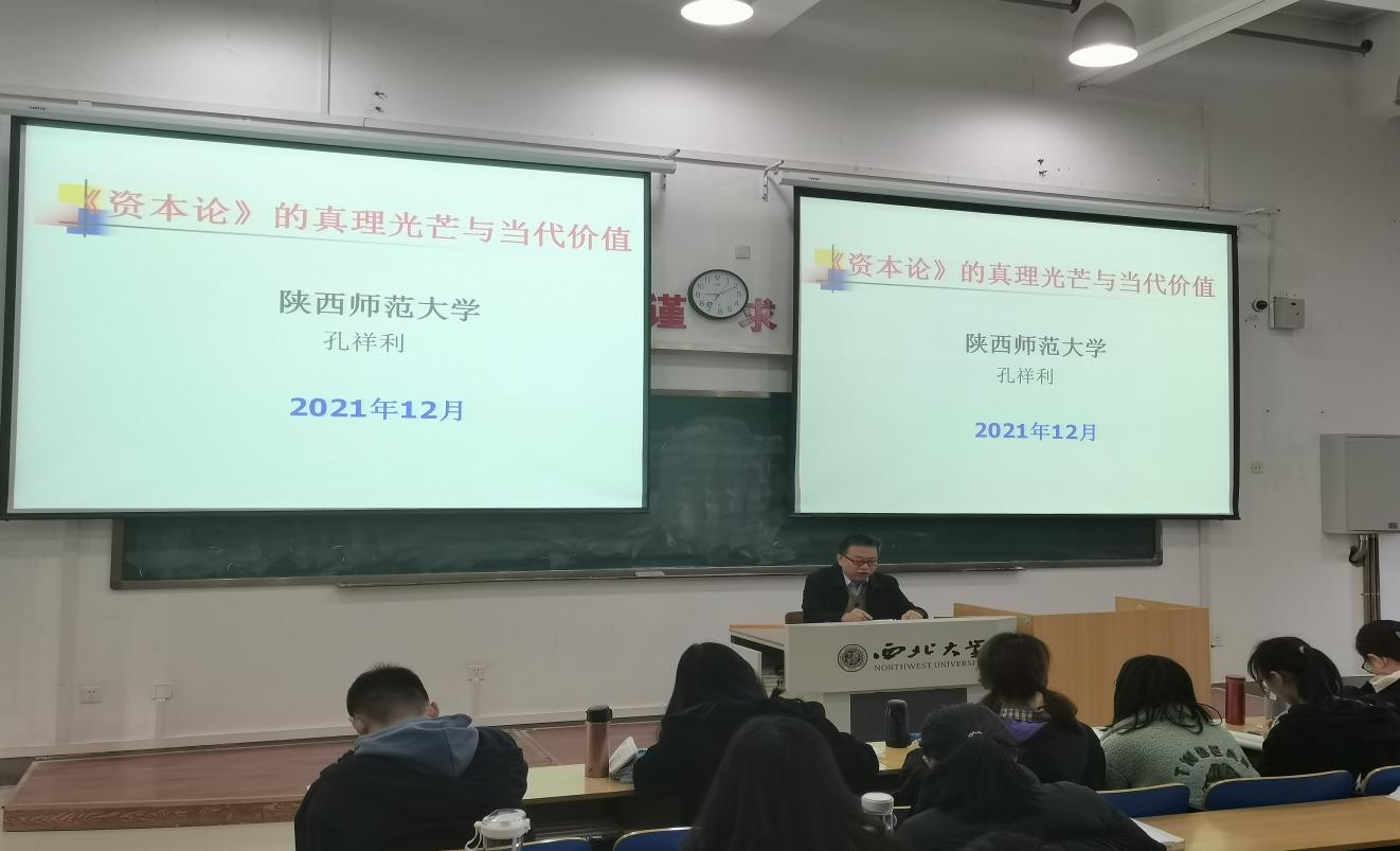 12月3日上午,陕西师范大学国际商学院教授,博士生导师孔祥利做客我校终南思政讲坛,为师生做了题为“《资本论》永远闪耀着马克思主义基本原理的真理光芒”学术讲座。讲座由马克思主义学院常务副院长王强教授主持。