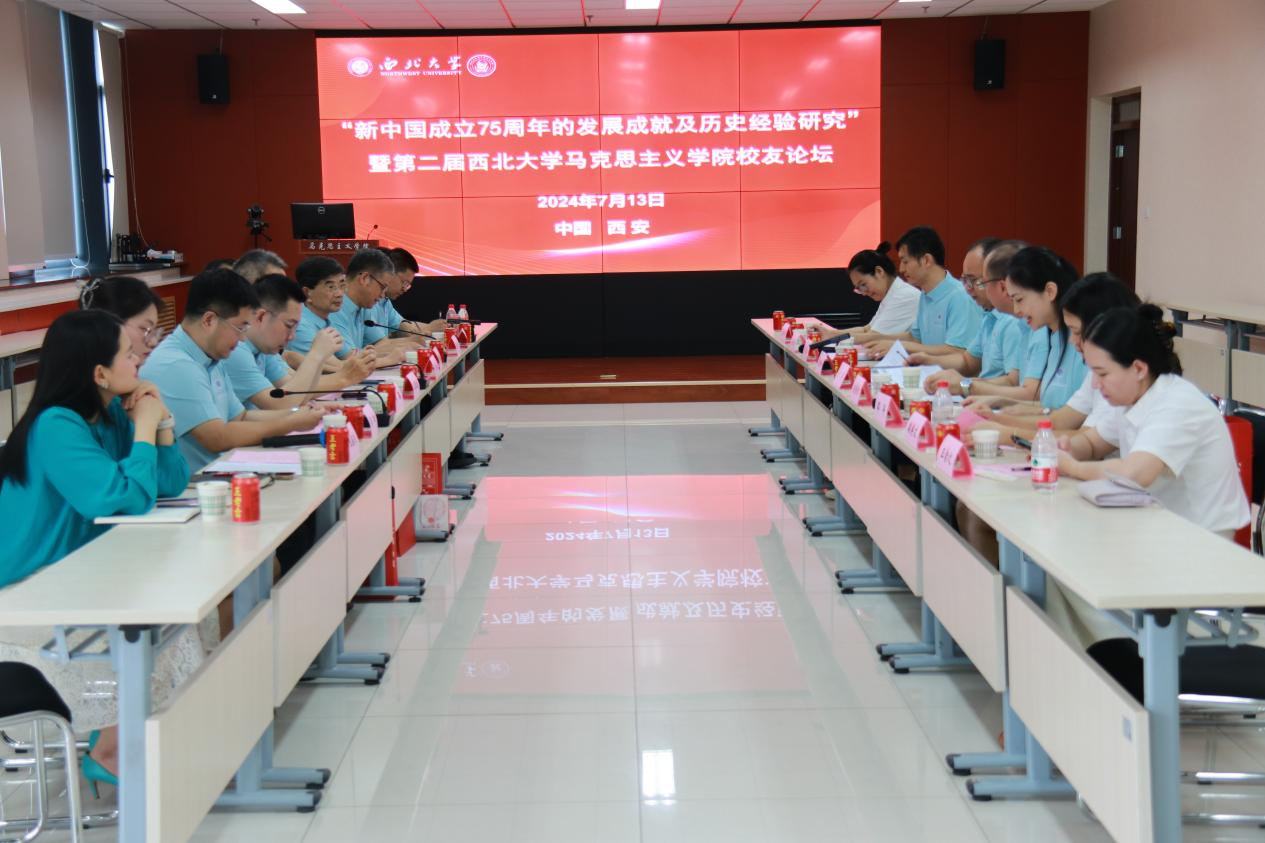 7月13日下午,在西北大学第五届校友集中返校日活动暨马克思主义学院校友返校之际,我院举行了“新中国成立75周年的发展成就及历史经验研究”暨第二届必赢242net官网校友论坛。陕西学前师范学院原党委书记付建成教授、西安邮电大学党史与红色文化研究院院长袁武振教授、西安财经大学马克思主义学院原院长闫团结教授、西藏民族大学马克思主义学院康欣平教授、西安工程大学马克思主义学院副院长郭松教授、咸阳师范学院马克思主义学院院长曾永安、西安翻译学院马克思主义学院副院长郑璐、陕西省秦商总会秘书长曹向阳、2009级博士冯政清等各级校友,学院领导班子全体成员和师生代表参加。论坛开幕式由院党委副书记邵平主持。
