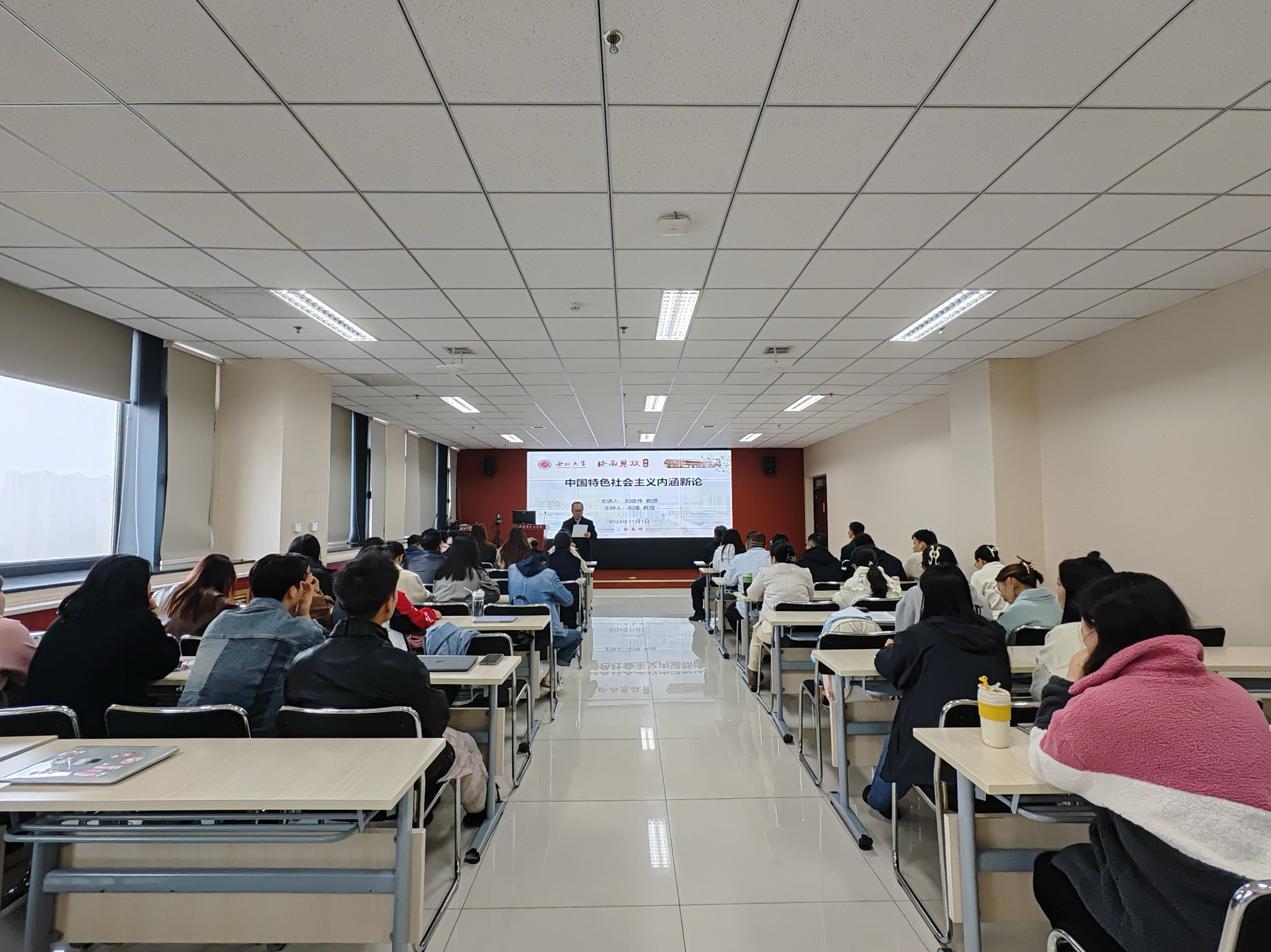 11月1日下午,西安电子科技大学马克思主义学院副院长刘建伟教授应邀做客“终南思政讲坛”第36期,为我院师生作了题为《中国特色社会主义内涵新论》的学术讲座。讲座由我院院长何博教授主持。