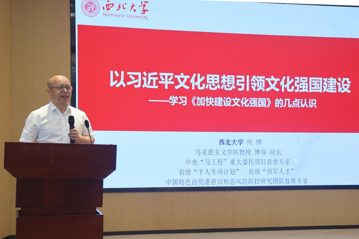 集体备课会分为三个阶段。在主旨报告环节,我院院长何博教授作了题为《以习近平文化思想引领文化强国建设》的专题报告。在教学展示环节,来自西北大学、安康学院、安康中学和汉滨初中的四位优秀教师围绕习近平文化思想进行了同课异构的教学展示。在教学交流与经验分享环节,西安邮电大学、西安外国语大学、陕西中医药大学、西京学院、陕西学前师范学院、西北政法大学、陕西理工大学、安康学院等高校马克思主义学院负责人围绕“大思政课”主题,分享了在思政课建设中的创新举措。