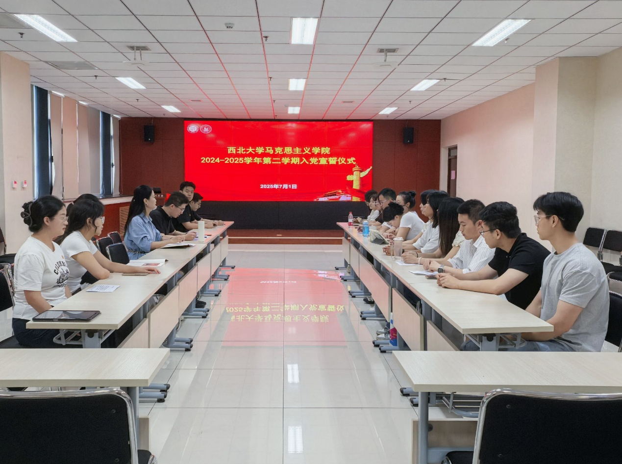 宣誓仪式在雄伟庄严的《国际歌》声中拉开帷幕。学院党务工作人员首先宣读了2024-2025学年第二学期新发展党员名单。随后,全体党员面向党旗庄严宣誓,各学生党支部书记为新发展党员配发党徽。